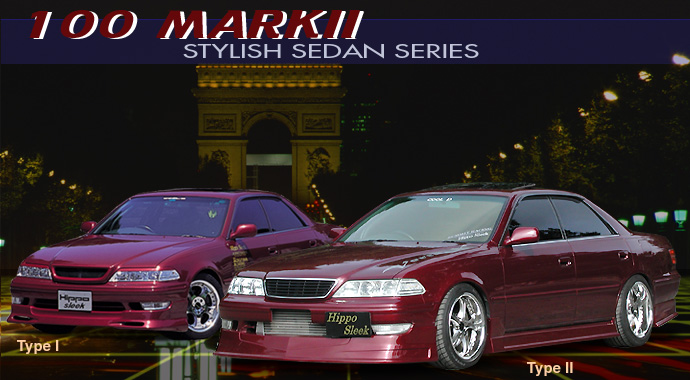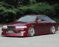マイルドな100MARKIIをアグレッシブスポーツセダンに変貌させるエアロキット。追加のフロントフェイスが存在感を主張する。